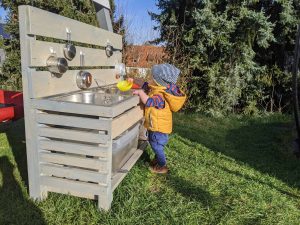 Matschküche mit Pumpe für unendlichen Wasserspaß